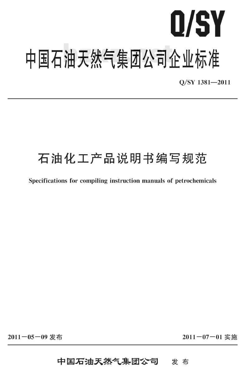- QSY 1381-2011 石油化工产品说明书编写规范
