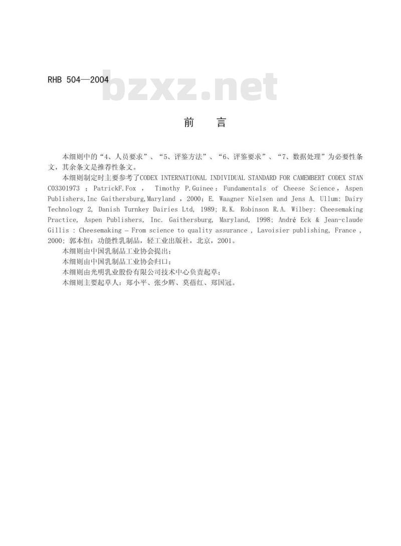 TimothyP.Guinee:FundamentalsofCheeseScience,AspenPublishers,Inc Gaithersburg,Maryland ,2000; E.Waagner Nielsen and Jens A. Ullum: DairyTechnology 2,Danish Turnkey Dairies Ltd, 1989;R.K.Robinson R.A.Wilbey:CheesemakingPractice,Aspen Publishers,Inc.Gaithersburg, Maryland,1998;Andre Eck &Jean-claudeGillis:Cheesemaking-From science to qualityassurance,Lavoisier publishing,France,2000;郭本恒:功能性乳制品,轻工业出版社,北京,2001。本细则由中国乳制品工业协会提出;本细则由中国乳制品工业协会归口:本细则由光明乳业股份有限公司技术中心负责起草:本细则主要起草人:郑小平、张少辉、莫蓓红、郑国冠。1范围