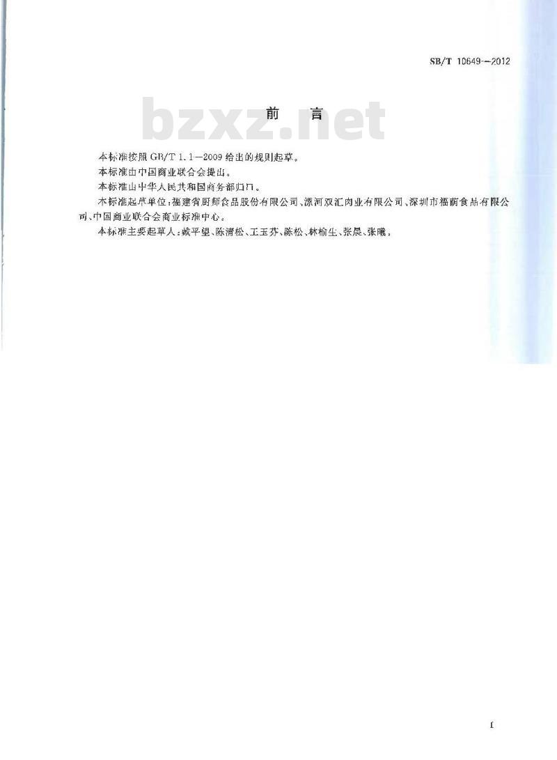 本标准起草单位:福建省厨师食品股份有限公司,源河双汇肉业有限公司,深圳市福荫食品有限公司、中国商业联合会商业标摊中心。本标雄主要起草人:戴平望、陈清松、工玉芬、陈松、林榆生、张晨、张曦,1范围