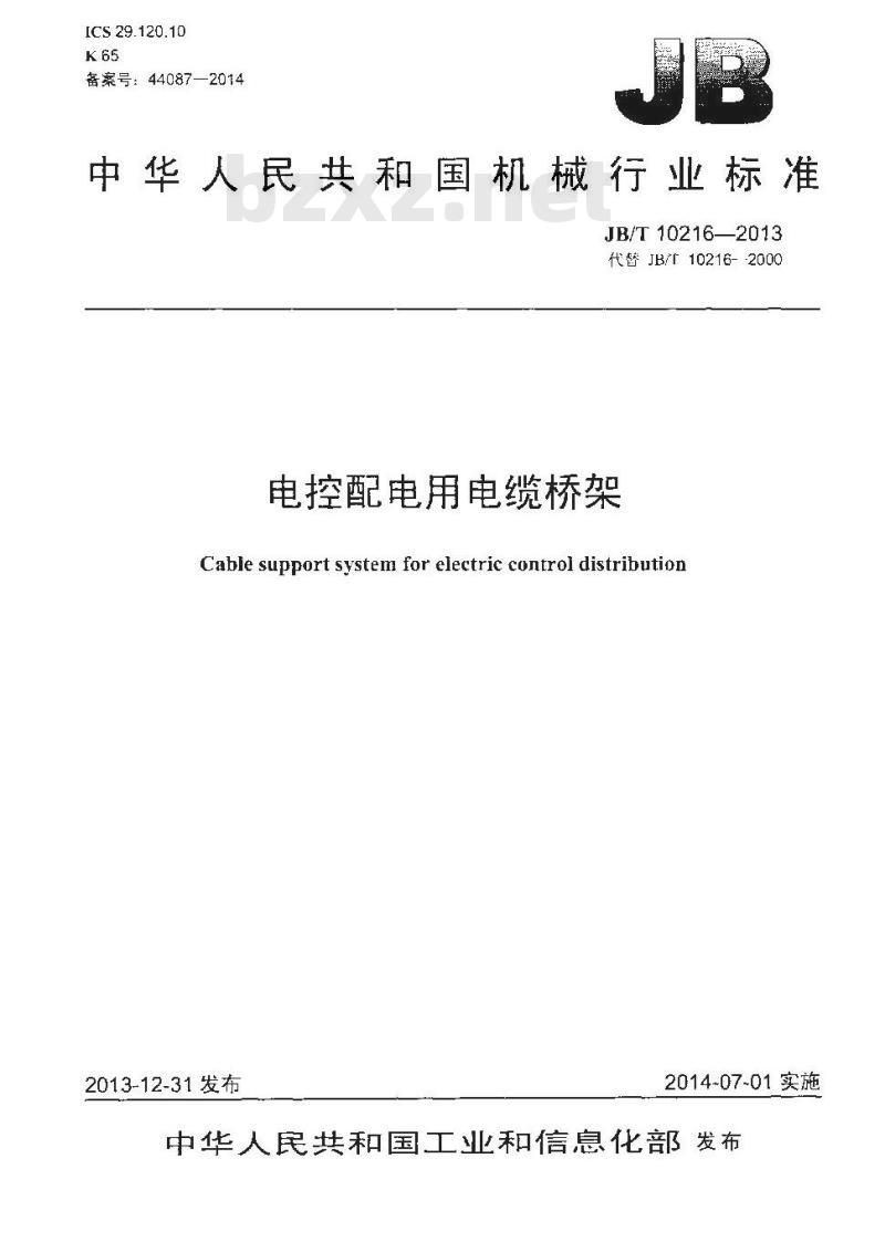 一-定义、型号、代号与GB/21762-2008《电缆等理电缆托盘系统和电缆梯架系统》保持致:一增加了网状电缆桥架剂复合电缆桥架的内容:一表面处理方法一增折广VCR双金属涂层:-增加「电缆桥架制造精度的要求;一增加了玻璃钢桥架和个金矫架的充许毁小板材原度:增加计修改了白厂检验的批样、检验、判定规则;一修改并究善广典型电缆桥英安个工件载荷和机械载荷试验方法:修改「耐火电缆桥架的耐火等级及代号:将JB/102162000的提示性附录改为资料性附录本标准回国机械工业联合会提山。本标准企国电器谢径标准化技术委员会(SACTC67)州!!本标准起节单位:天津屯气传动设让研究所有限公司江苏海纬集述有限公司、大津长传电控配电有限公司。法品美特桥架股份有限公元、江苏力句电器集团有限公司、镇江方电器设备!台限公司、广州市出大虹工业计发有限公可、江然省配电设备产品质量监督检验十心、中国质量认证心,川也气投份有限公司,浙玺电气(杭州)集划有限公、四电器集有限公司、市山盾不气有限责任公、宁波天元中气有限公司、苏州屯器科学研究院股份有限公司、汀苏金华厦电气有限公司、杭州杭习舟线有限公司、扬中市扬子加下有限公司,江苏林也设备有限公司、北宗广发电有限公司、工海友邦地气(集团)股份有限公司。本标准工蓉起草人:准、张跃进、上阳、董端海、孙保建、马纪财、李爱、达坚、戴中怀、史慧敏、工长东、林必宝,左成军、石风邦、吴墩、何秀明、案振达、宋建、张荣华、方澈、郑加鹏、、蒋文利。