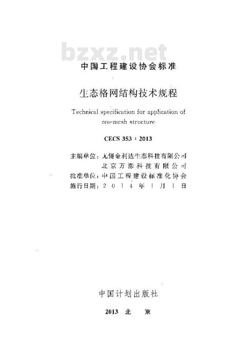 批雅单行:中国工程建设标滩化协会施行日期:214年1月1日