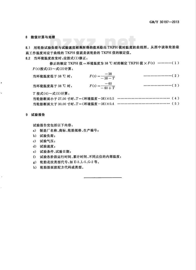 当轮胎断面小于27.00寸时,T=(环境温度—38)×0.5当轮胎断面大于30.00寸时,T=(环境温度一38)×0.49试验报告