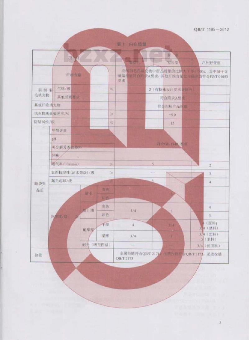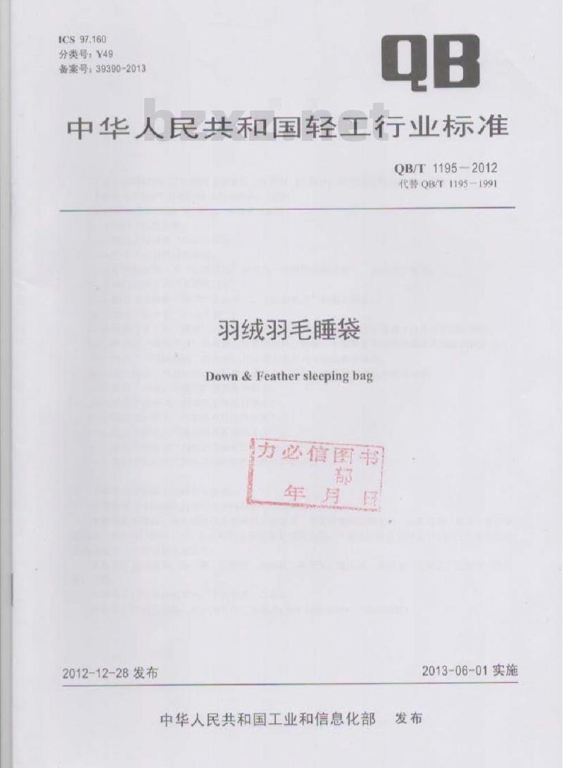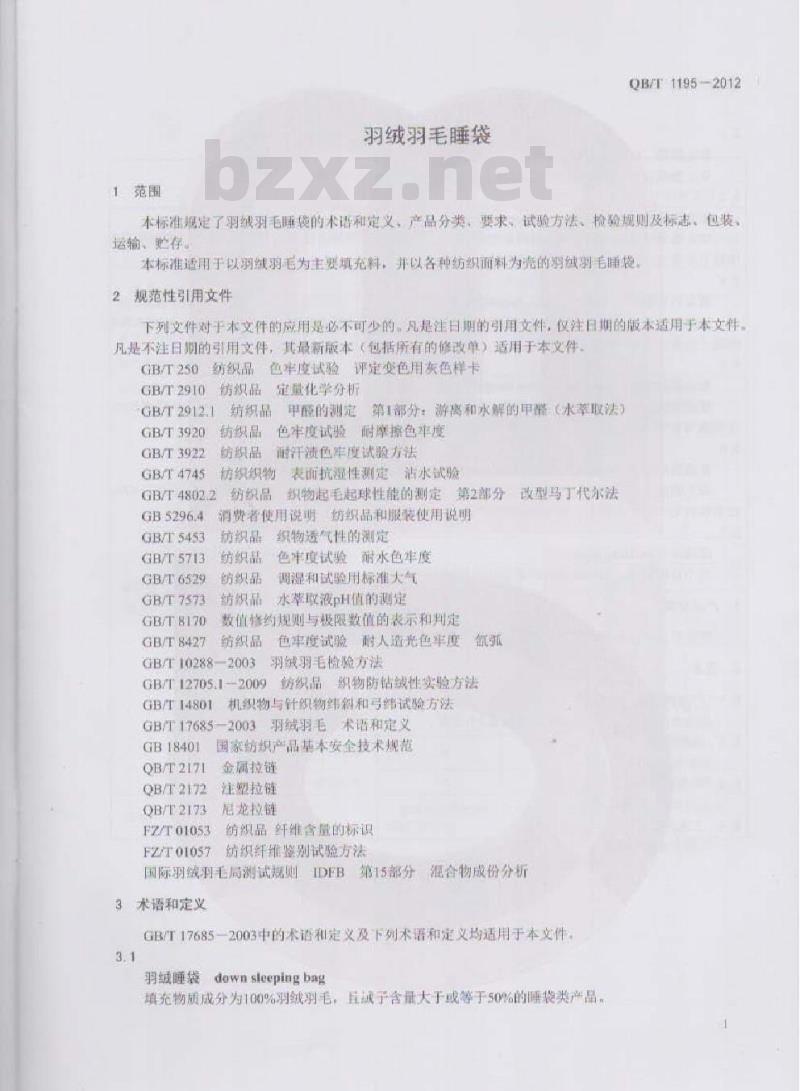 - QB/T 1195-2012 羽绒羽毛睡袋