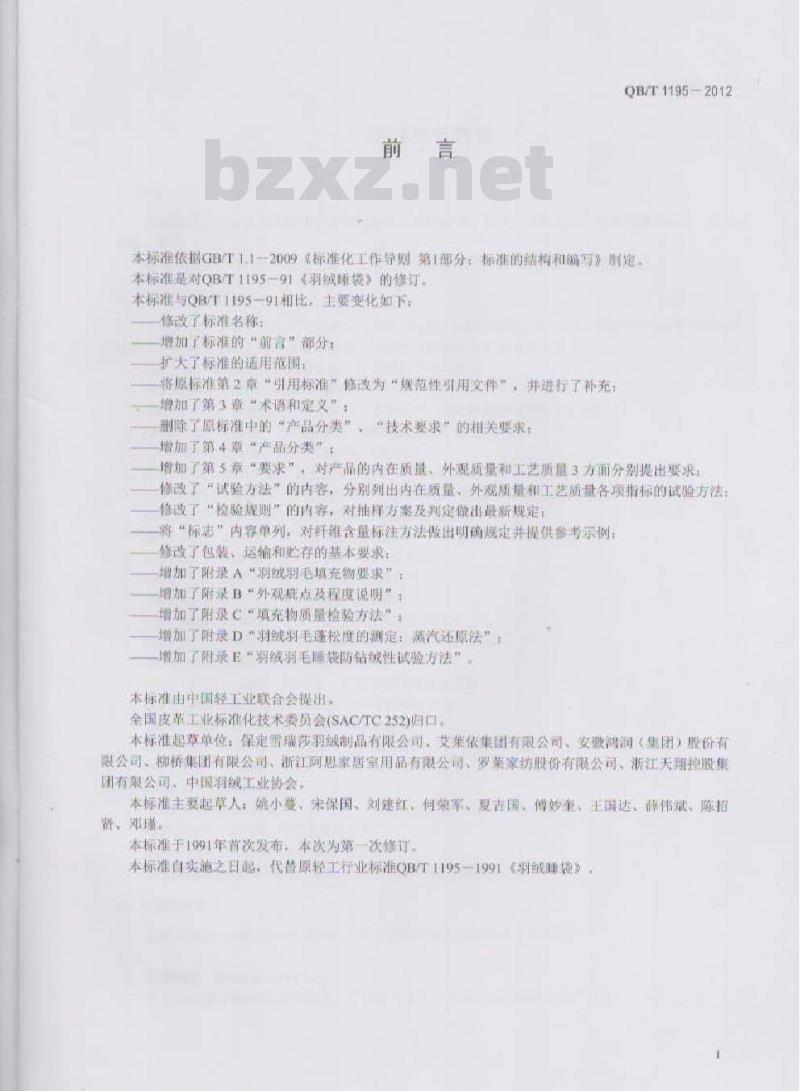 本标准于1991年首次发布,本次为第一次修订本标准自实施之日起,代替原轻工行业标准QB/T1195一1991《羽绒睡袋》1范围