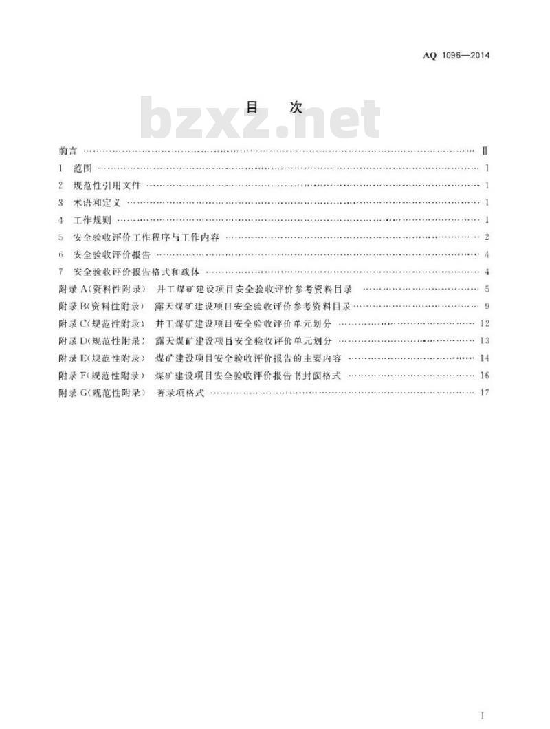 井工煤矿建设项目安全验收评价参考资料目录AQ1096—2014