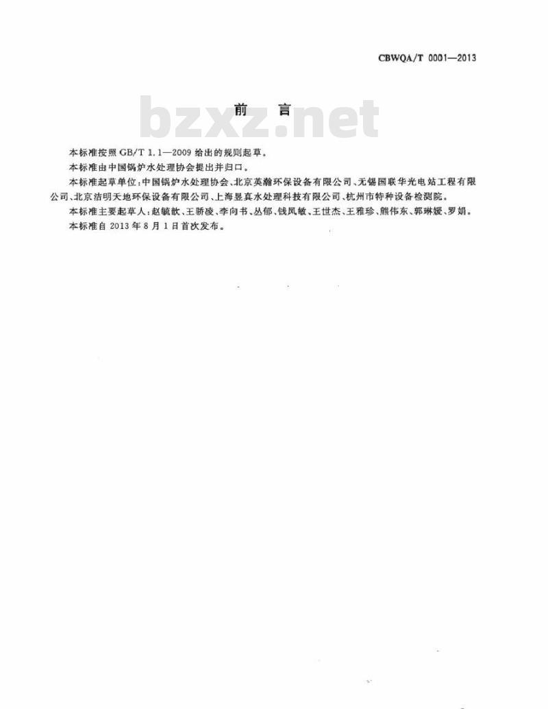 本标准按照GB/T1.1一2009给出的规则起草。本标准由中国锅炉水处理协会提出并归口。CBWQA/T0001—2013