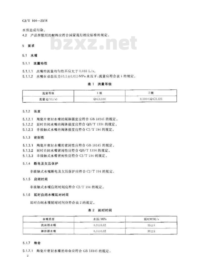 5.1.7.2延时自闭水嘴的寿命应符合QB/T1334的规定。5.1.7.3非接触式水嘴的寿命应符合CJ/T194的规定。5.2便器