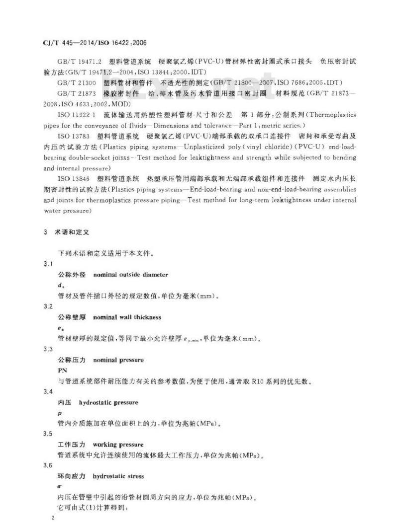 - CJ/T 445-2014 给水用抗冲抗压双轴取向聚氯乙烯(PVC-0)管件及连接件