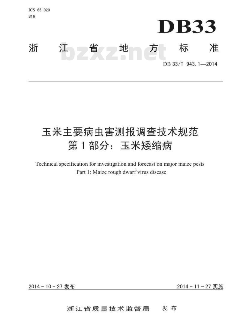 - DB33/T 943.1-2014 玉米主要病虫害测报调查技术规范 第1部分:玉米矮缩病