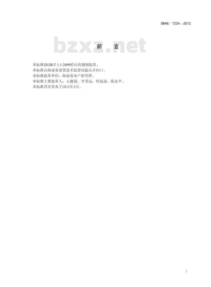 本标准按GB/T1.1-2009给出的规则起草。本标准由海南省质量技术监督局提出并归口。本标准起草单位:海南省水产研究所。本标准主要起草人:王德强、李芳远、延南、陈永平。本标准首次发布于2012年4月。