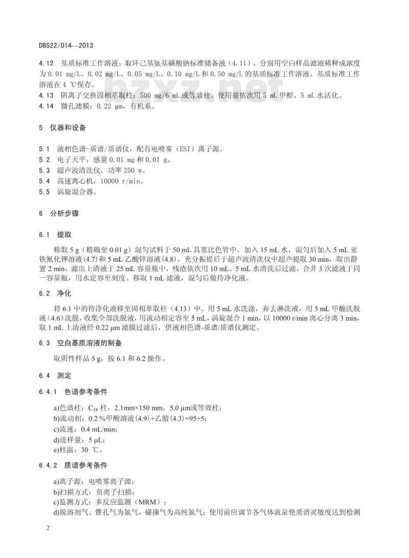 DBS22 014-2013 食品安全地方标准 乳制品及含乳饮料中环己基氨基磺酸钠的测定 液相色谱-质谱质谱法 DBS22014-2013