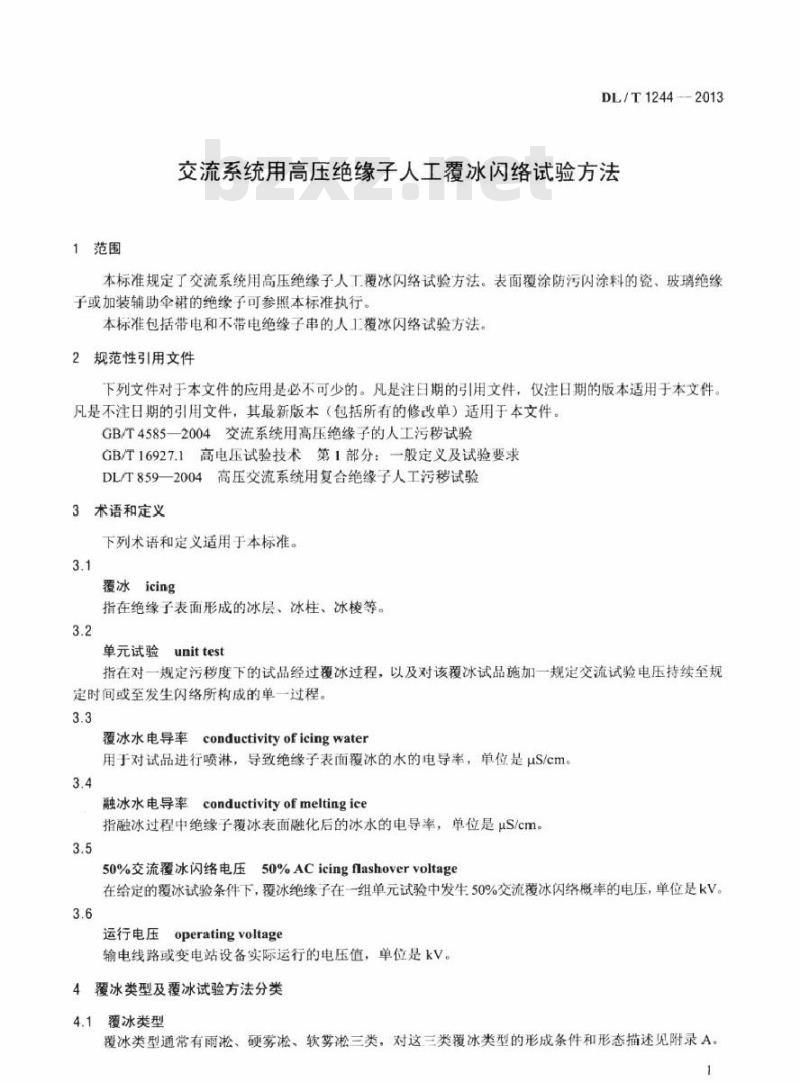 - DL/T 1244-2013 交流系统用高压绝缘子人工覆冰闪络试验方法