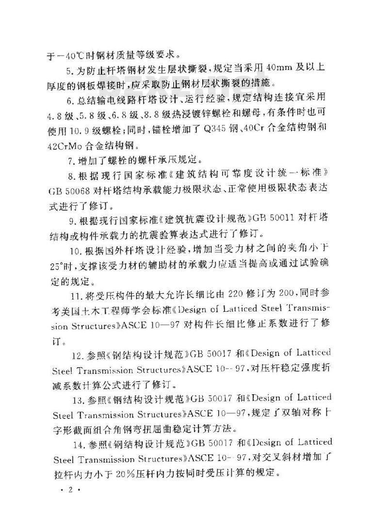7.增加了螺栓的螺杆承压规定。8.根据现行国家标准《建筑结构可靠度设计统-标准》GB50068对杆塔结构承载能力极限状态、正常使用极限状态表达式进行了修订。