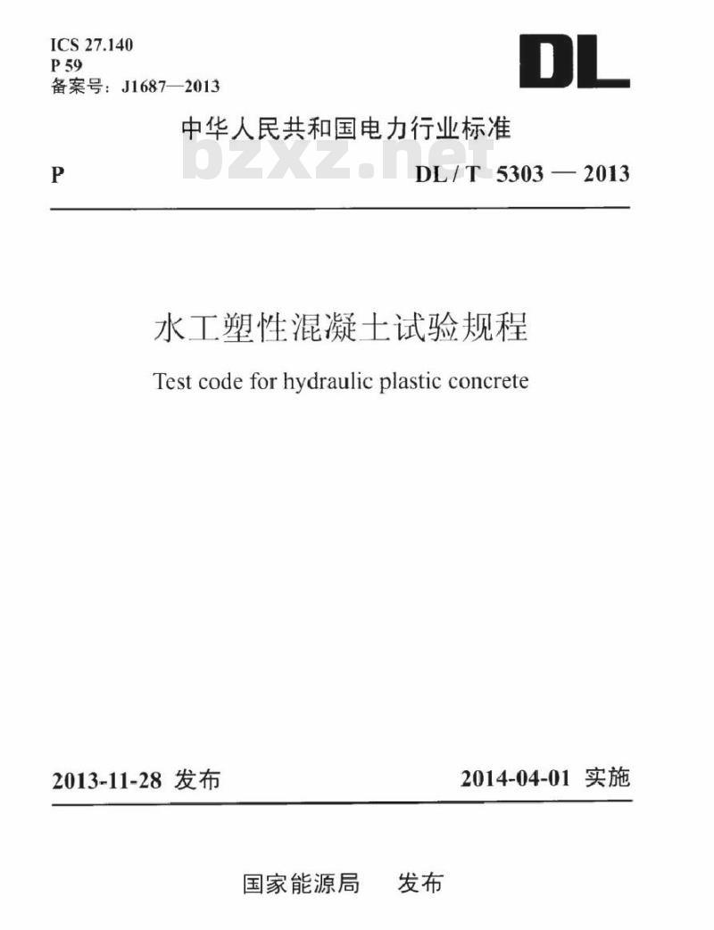 Test codeforhydraulic plastic concreteDL/T5303—2013
