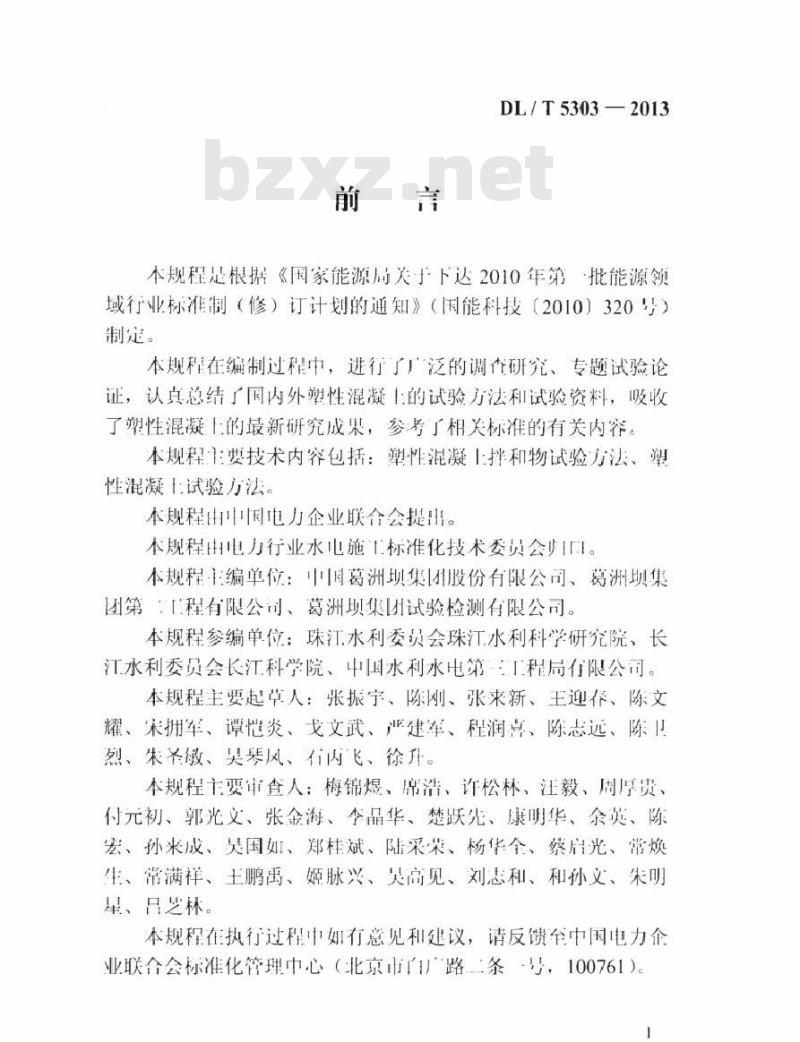 本规程出中国电力企业联合会提出。本规程电力行业水电施1标准化技术委员会归口。本规程主编单位:中国葛洲坝集股份有限公司、葛洲坝集团第:【程有限公司、葛洲项集州试验检测有限公司。本规程参编单位:珠江水利委员会珠江水利科学研究院、长江水利委员会长江科学院、中国水利水电第-:程局有限公司。本规程主要起草人:张振宇、陈刚、张来新、王迎春、陈文耀、未拥车、谭炎、戈文武、亚建车程润喜、陈志远、陈门烈、圣敏、臭琴风、石内飞、徐片。本规程主要审食人:梅锦煜、席浩、许松林、注毅、周厚贵、付元初、郭光文、张金海、本晶华、楚跃先、康明华、金、陈宏、孙米成、国如、郑桂斌、陆采、杨华金、紧光、常焕生、常满祥、鹏禹、姬脉兴、人高见、刘思和、和体义、朱可星、只芝林。