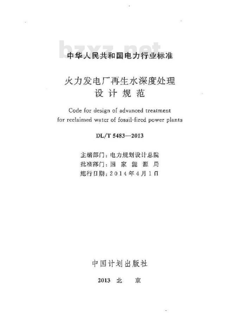 Code for design of advanced treatmentforrcclaimed watcr of fossil-fircd power plantsDL/T5483-—2013