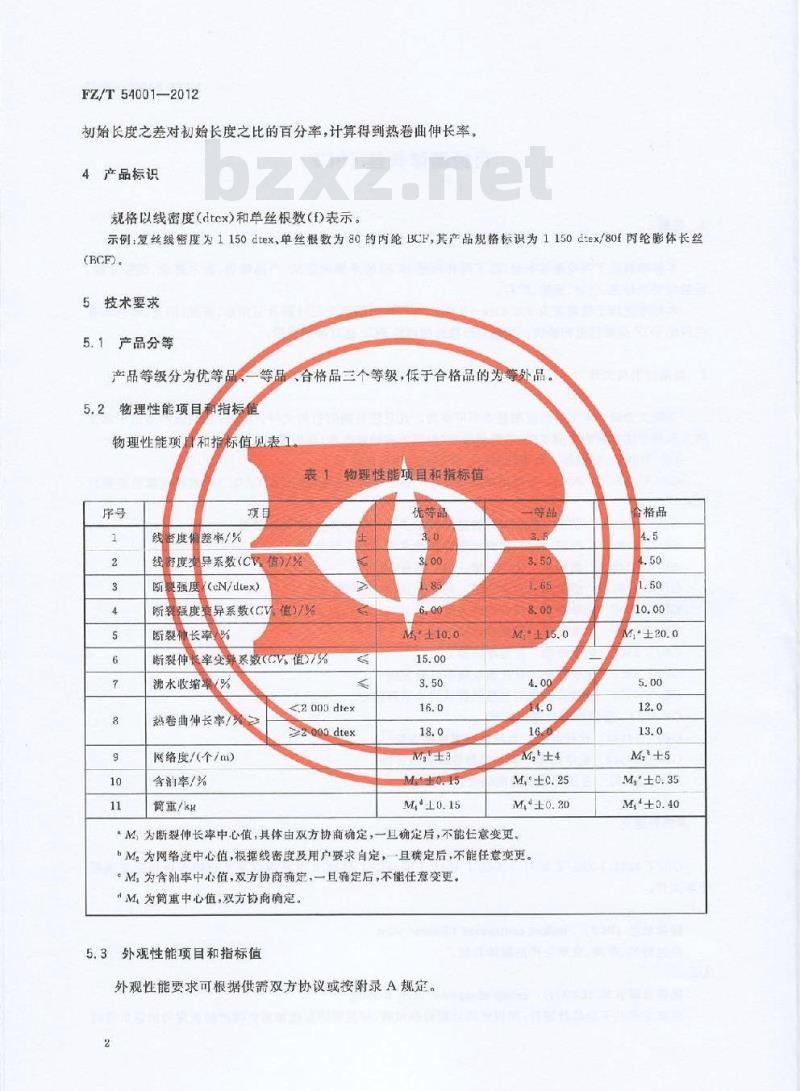 - FZ/T 54001-2012 丙纶膨体长丝(BCF)