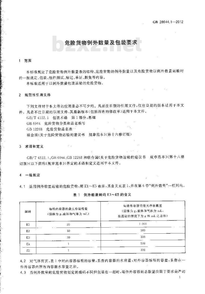 - GB 28644.1-2012 危险货物例外数量及包装要求