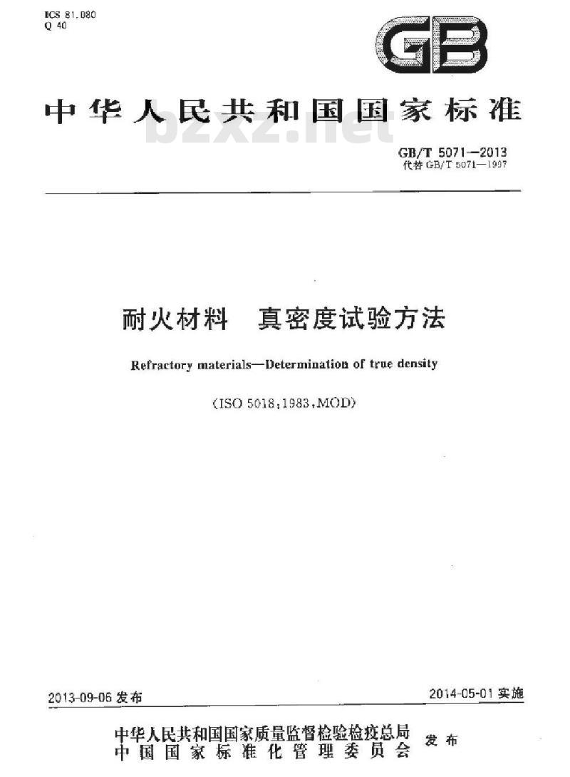 - GB/T 5071-2013 耐火材料 真密度试验方法