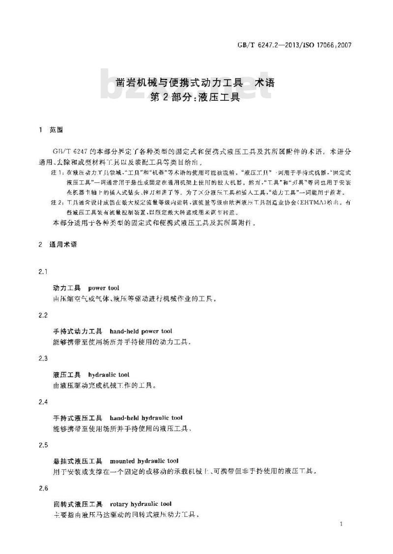 - GB/T 6247.2-2013 凿岩机械与便携式动力工具 术语 第2部分液压工具