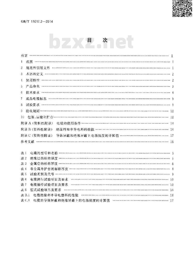GB/T11017的本部分规定广额定电压110kV(U,126kV)铜芯铝芯交联乙烯绝缘电力电缆的基本结构、型命名,技术要求,试验及验收规则、包装、运输及贮存。本部分适用于通常安装和运行条件下使用的单心电力电缆,但不适用于特殊条件下使用的电缆,如海底电缆,