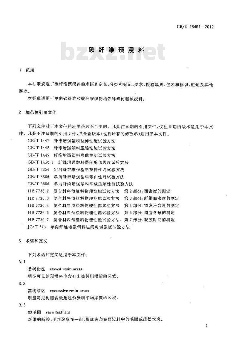 本标准适用于单向碳纤维和碳纤维织物增强环氧树脂预浸料。2规范性引用文件