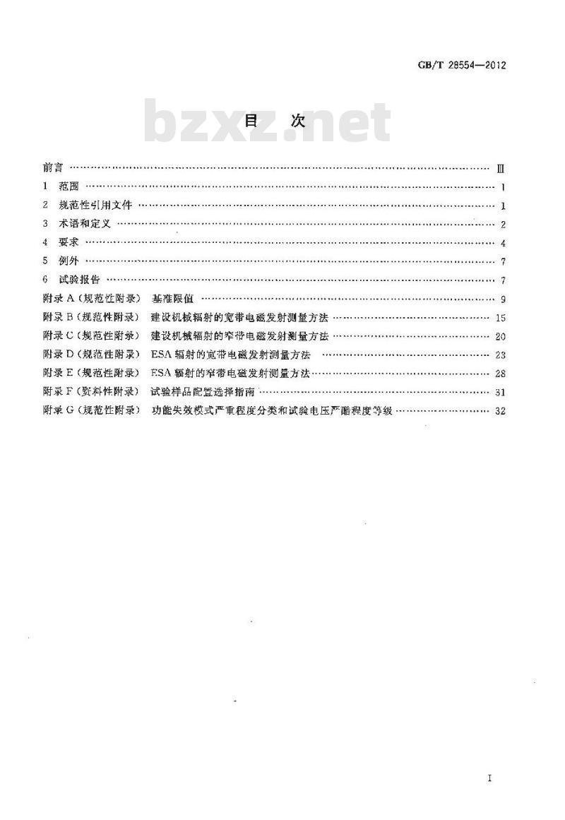 依据4.2.2,宽带电磁发射等级。依据4,3.2,牵带电磁发射等级:依据4.1.2建设机械任何缺失的功能控制的标识,依据4.5.2,宽带电磁干扰等级。GB/T28554—2012