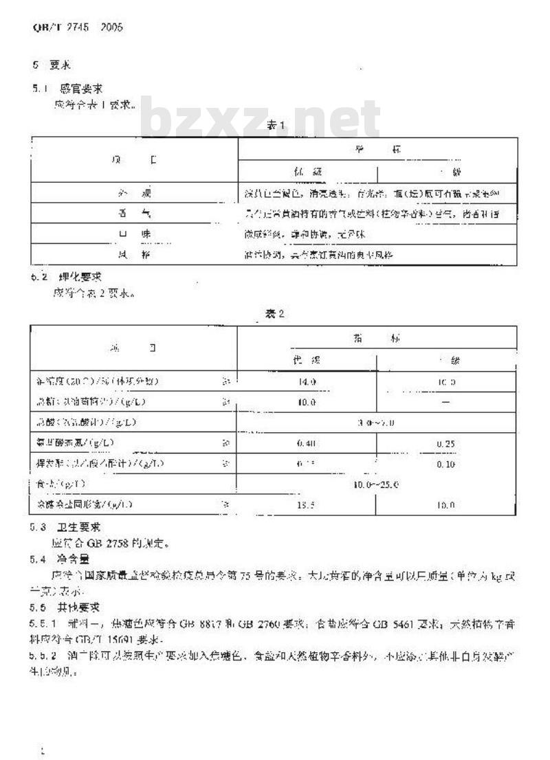 本标准规定了烹饪黄酒的术语和定义、分类、要求、试验方法、检验规则及标志、包装、运输和贮存。本标准适用于经粮食发酵酿制、再加入食盐(可加入天然植物辛香料)色兑而成的,供烹饪用的黄酒。 QB/T 2745-2005 烹饪黄酒 QB/T2745-2005