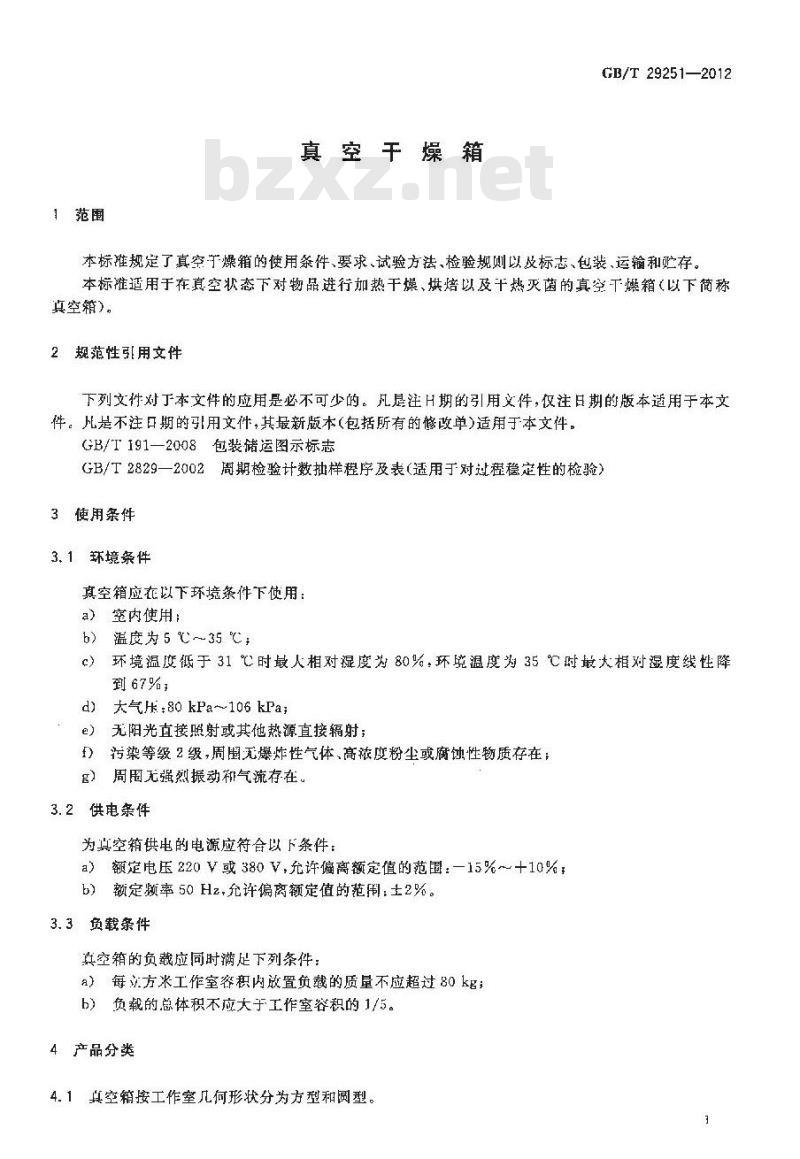 真空箱的负藏应同时满足下列条件:a)每方米工作室容积内改置负裁的质量不应超过80kg;b)负载的总体积不应大于工作室容积的1/5。4产品分类