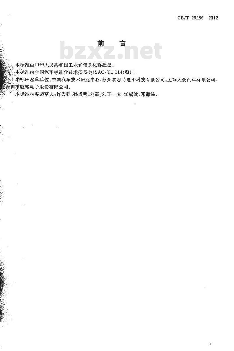 本标推由中华人民共和国工业和信息化部提出。本标准由全国汽车标准化技术委员会(SAC/TC 111)归口。GB/T29259—2012