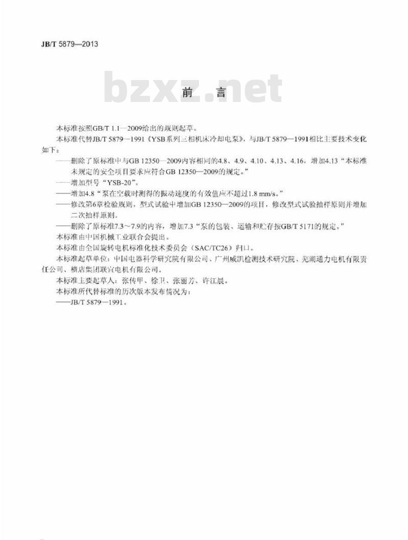 本标准按照GB/T1.12009给出的规则起草。本标准代替JB/T58791991《YSB系列三相机床冷却电泵》,与JB/T5879一1991相比主要技术变化如下: