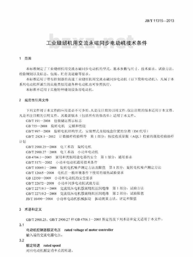 - JB/T 11315-2013 工业缝纫机用交流永磁同步电动机技术条件