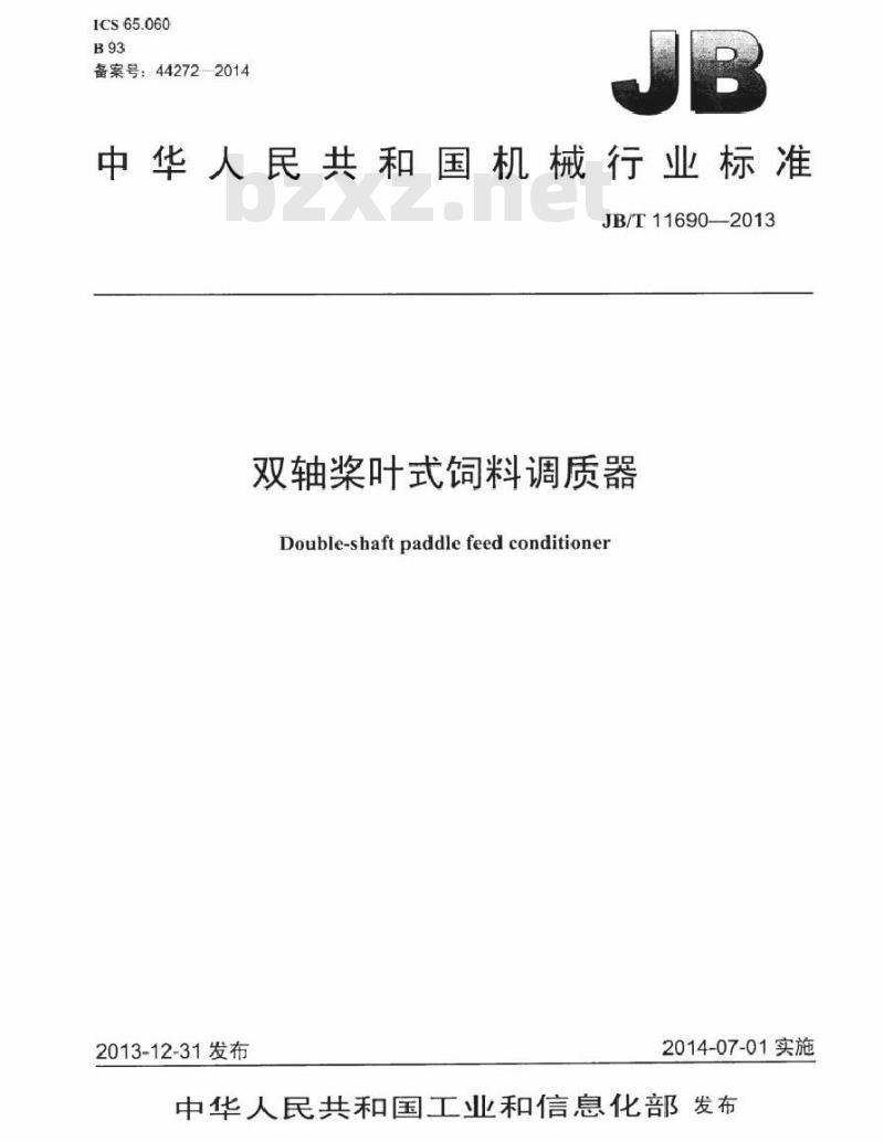 - JB/T 11690-2013 双轴桨叶式饲料调质器