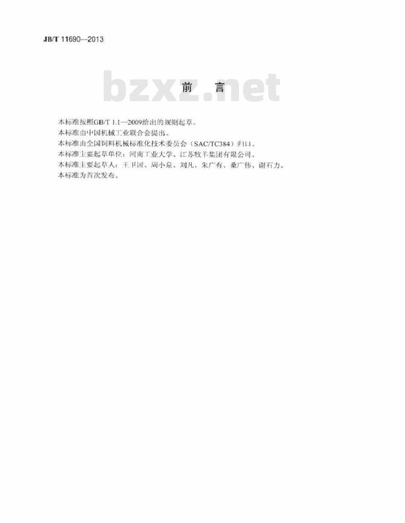 本标准按照GB/T1.1—2009给出的规则起草本标准由中国机械工业联合会提出。本标准由全国饲料机械标准化技术委员会(SAC/TC384)归山。本标准主要起草单位:河南工业大学、江苏牧羊集团有限公司。本标准主要起草人:王卫国、周小泉、刘凡、朱广有、桑广伟、谢石力。本标准为首次发布。