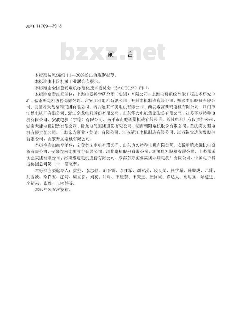 本标准按照GB/T1.1--2009给出的规则起草。本标准由中国机械工业联合会提出。本标准由全国旋转电机标准化技术委员会(SAC/TC26)归口。本标准负责起草单位:上海电器科学研究所(集团)有限公司、上海电机系统节能工程技术研究中心、佳木斯电机股份有限公司、六安江准电机有限公司、开封电机制造有限公司、衡水电机股份有限公司、安徽省天马泵阀集团有限公司、福安远东华美电机有限公司、西安泰富西玛电机有限公司、江门市江晟电机厂有限公司、浙江金龙电机股份有限公司、山东华力电机集团股份有限公司、江苏环球特种电机有限公司、安波电机(宁德)有限公司、南平市南电通用机械有限公司、长沙电机厂有限责任公司、湖南天能电机制造有限公司、卧龙电气集团股份有限公司、湖南朝阳电机股份有限公司、重庆赛力盟电机有限责任公司、上海东方泵业(集团)有限公司、江苏清江电机制造有限公司、江苏锡安达防燃股份有限公司、山东开电机有限公司。本标准参加起草单位:文登奥文电机有限公司、山东力久特种电机有限公司、安徽明腾永磁机电设备有限公司、安徽皖南电机股份有限公司、河北电机股份有限公司、湘潭电机股份有限公司、上海邦浦实业集团有限公司、河南豫通电机股份有限公司、成都东方实业集团邛赚电机广有限公司、中国电子科技集团公司第二十一研究所。