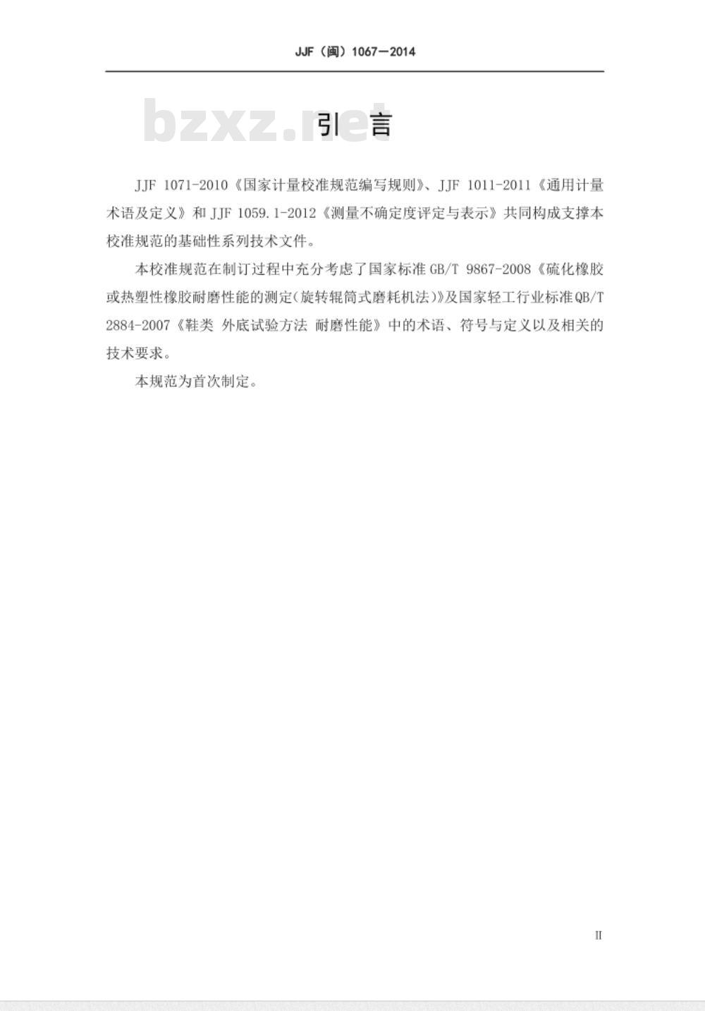 JJF1071-2010《国家计量校准规范编写规则》、JJF1011-2011《通用计量术语及定义》和JJF1059.1-2012《测量不确定度评定与表示》共同构成支撑本校准规范的基础性系列技术文件。本校准规范在制订过程中充分考虑了国家标准GB/T9867-2008《硫化橡胶或热塑性橡胶耐磨性能的测定(旋转辊筒式磨耗机法)》及国家轻工行业标准QB/T2884-2007《鞋类外底试验方法耐磨性能》中的术语、符号与定义以及相关的技术要求。