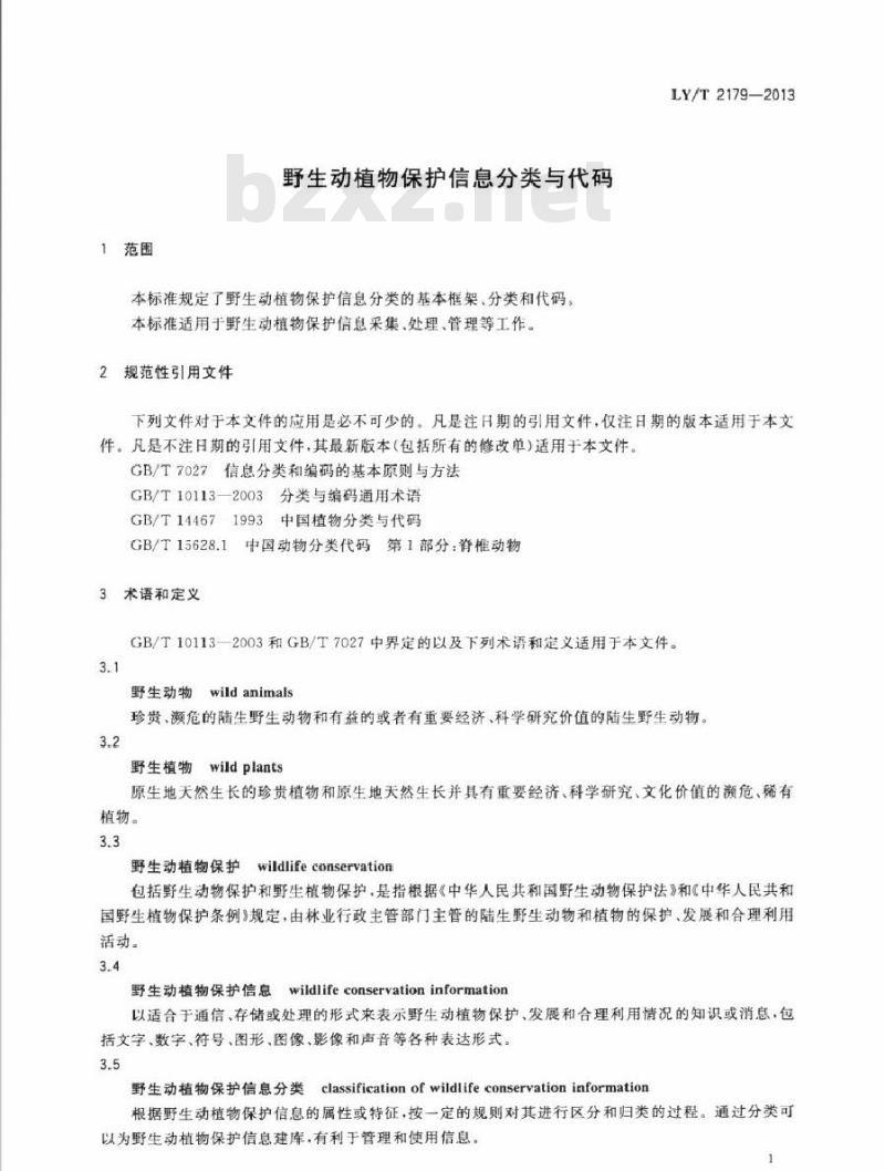- LY/T 2179-2013 野生动植物保护信息分类与代码
