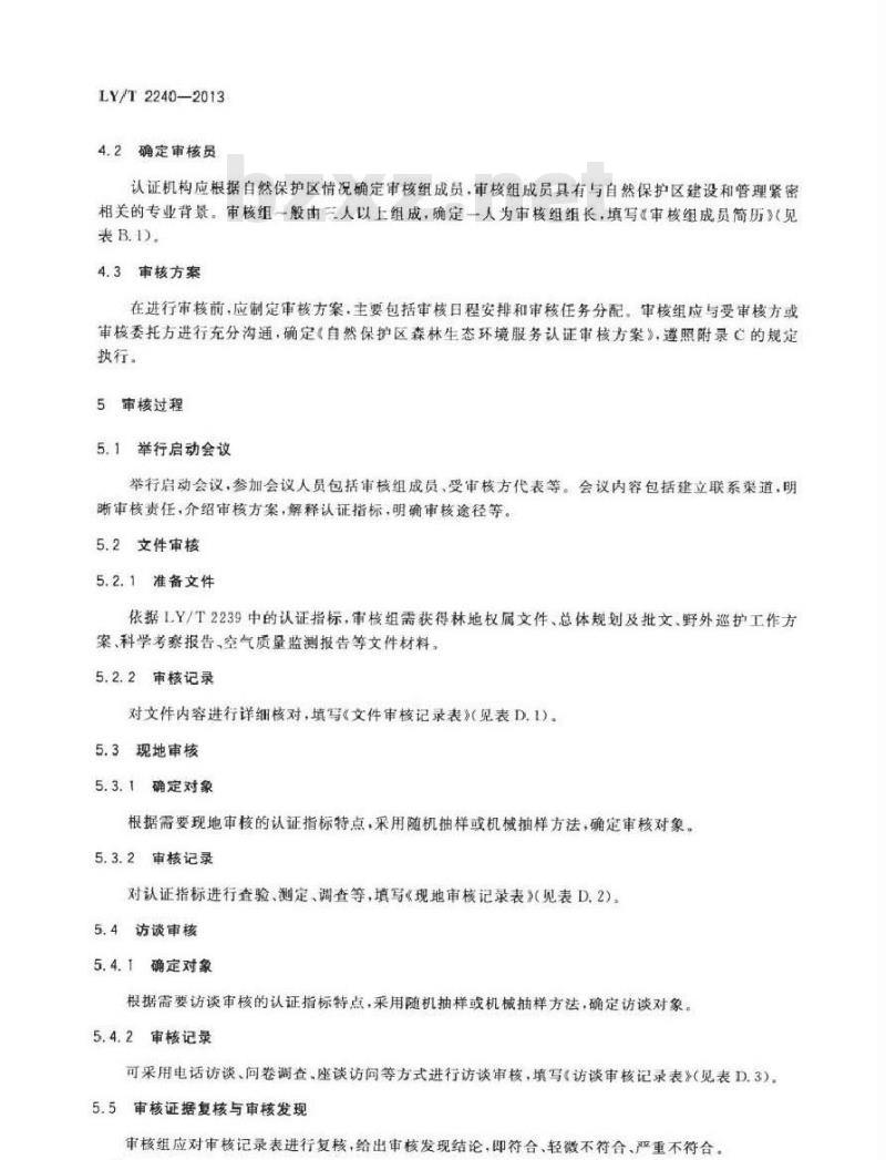 - LY/T 2240-2013 中国森林认证 森林生态环境服务 自然保护区审核导则