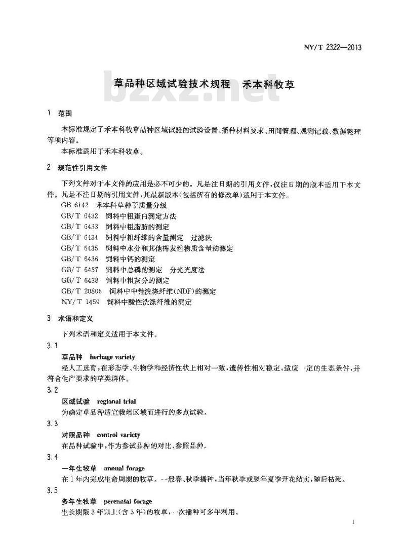 - NY/T 2322-2013 草品种区域试验技术规程 禾本科牧草