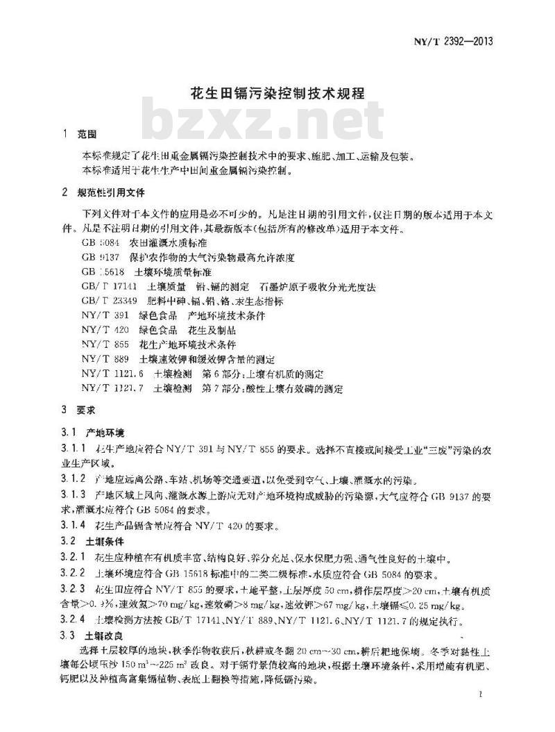 - NY/T 2392-2013 花生田镉污染控制技术规程