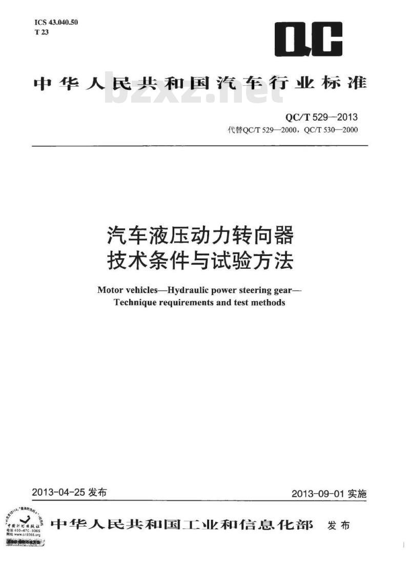 - QC/T 529-2013 汽车液压动力转向器技术条件与试验方法