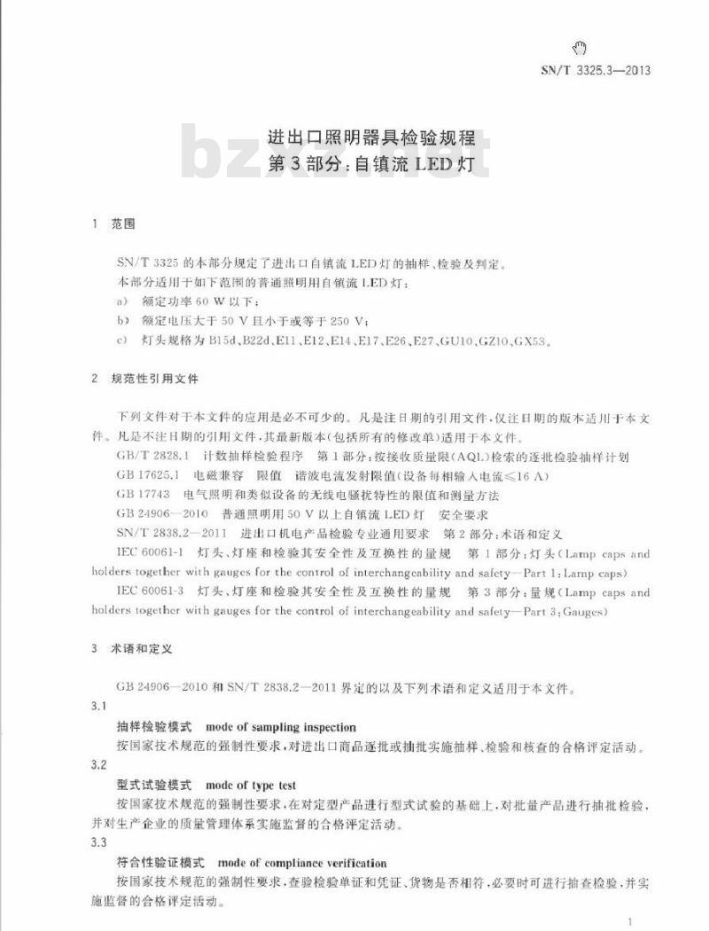 - SN/T 3325.3-2013 进出口照明器具检验规程 第3部分:自镇流LED灯
