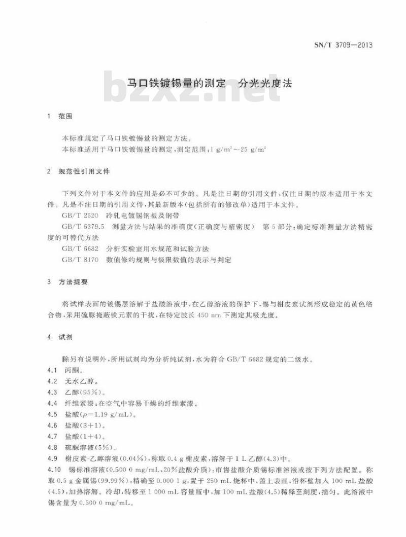 - SN/T 3709-2013 马口铁镀锡量的测定 分光光度法