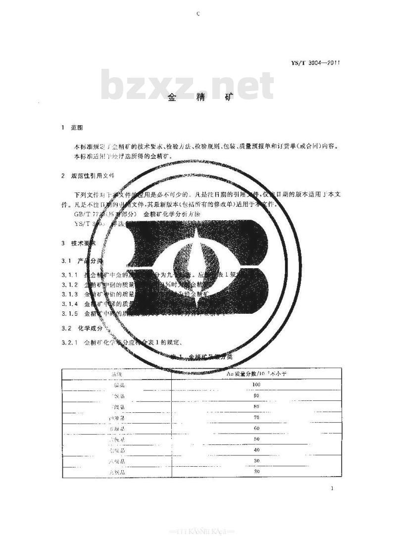YS/T30042011金精矿按照GB/T1.!-2009给出的规则起草。本标准由阔度金协会提出。