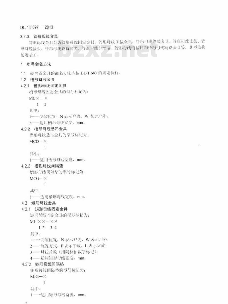4.1硬母线金的命名方法应按DL/T683的规定执行。4.2槽形母线金具