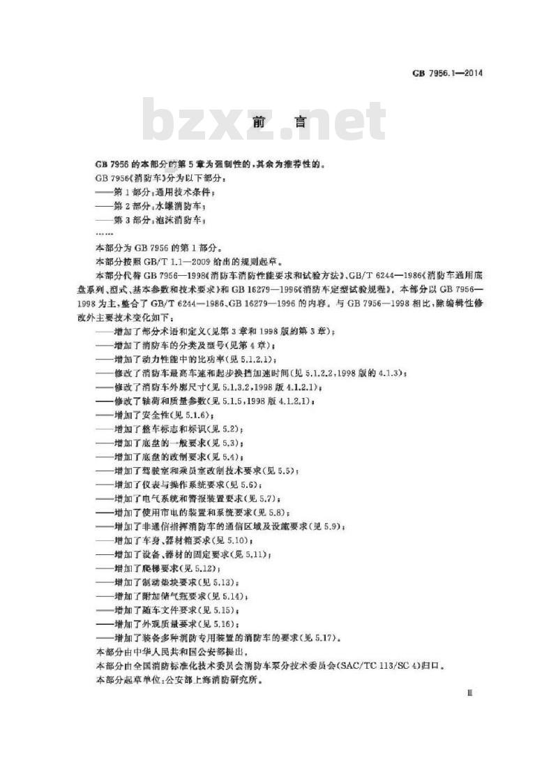 增加了制动垫块要求(见5.13):增加了附加储气瓶要求(见5.14);一增加了随车文件要求(见5.15);一增加了外观质量要求(见5.16);增加了装各多种消防专用装置的消防车的要求(见5.17)本部分由中华人民共和国公安部提出。本部分由全国消防标准化技术委员会消防车泵分技术委员会(SAC/TC113/SC4)归口。本部分起草单位公安部上海消防研究所,GB7956.1—2014