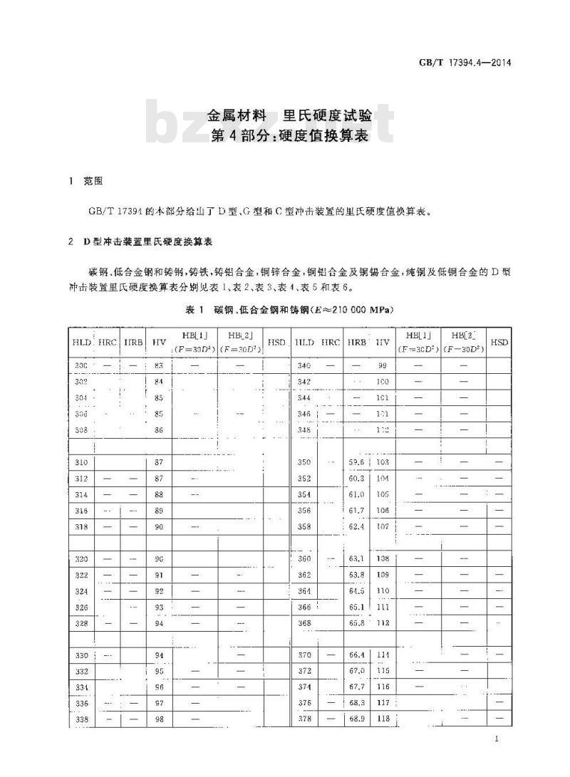 - GB/T 17394.4-2014 金属材料 里氏硬度试验 第4部分 硬度值换算表