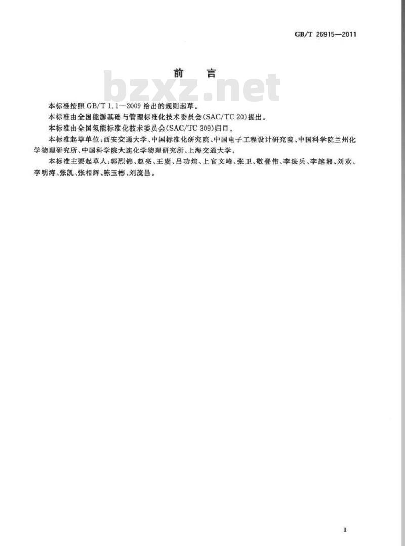 本标推按照GB/T1.1—2009给出的规则起草。本标准由全国能源基础与管理标准化技术委员会(SAC/TC20)提出。本标准由全国氢能标准化技术委员会(SAC/TC309)归口。GB/T26915—2011