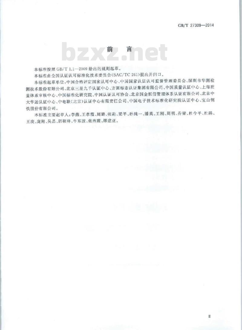 本标准按照GB/T1.1—2009给出的规则起草。本标准由全国认证认可标准化技术委员会(SAC/TC261)提出并归口。GB/T27309—2014