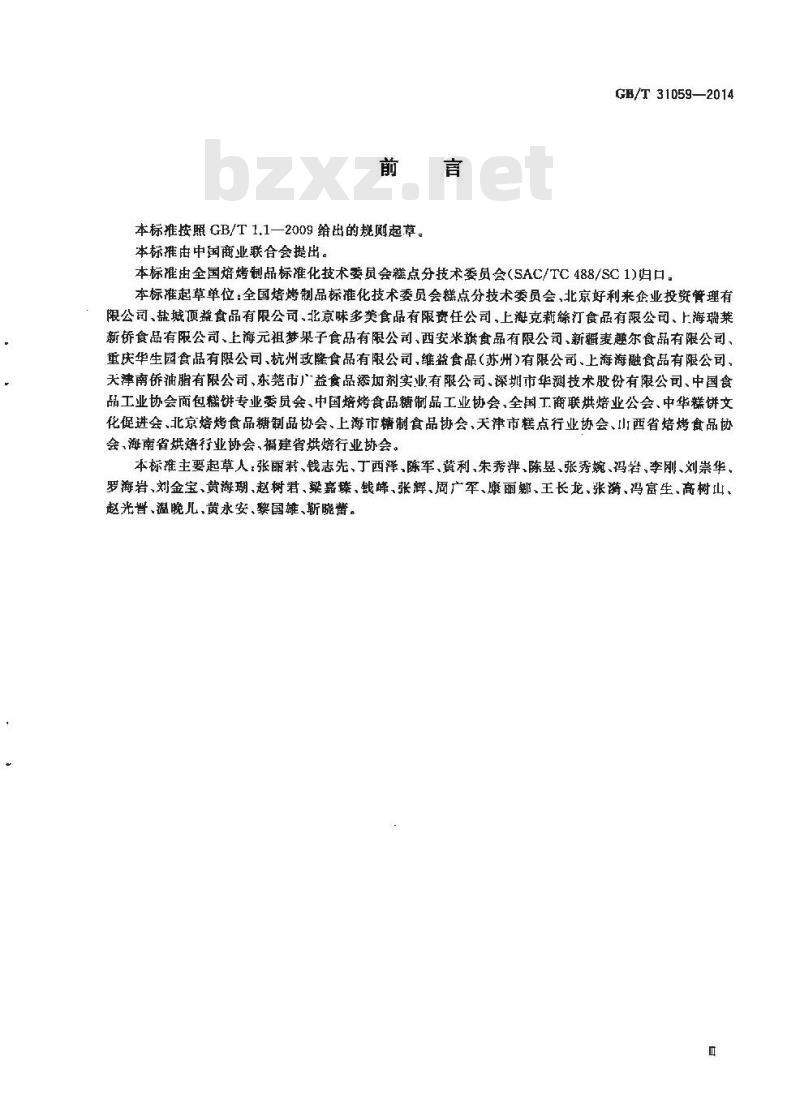本标准由全国焙烤制品标准化技术委员会糕点分技术委员会(5AC/TC488/SC1)归口。本标准起草单位:全国焙烤制品标准化技术委员会糕点分技术委员会、北京好利来企业投资管理有限公司、盐城顶益食品有限公司,北京味多美食品有限资任公司,上海克莉絲汀食品有限公司、上海瑞莱新侨食品有限公司、上海元祖梦果子食品有限公司、西安米旗食品有限公司、新疆麦趣尔食品有限公司、重庆华生园食品有限公司、杭州玫隆食品有限公司,维益食品(苏州)有限公司、上海海融食品有限公司、天津南侨油脂有限公司、东莞市广益食品添加剂实业有限公司、深圳市华测技术股份有限公司、中国食品工业协会面包稀饼专业委员会、中国焙烤食品糖制品工业协会、全国工商联烘焙业公会、中华糕饼文化促进会、北京焙烤食品糖制品协会、上海市糖制食品协会、天津市糕点行业协会、山西省焙烤食品协会、海南省烘焙行业协会、福建省烘焙行业协会。本标准主要起草人,张丽、钱志先、丁西泽陈军、黄利、朱秀萍、陈昱、张秀婉、冯岩、李刚、刘崇华、罗海岩、刘金宝、黄海瑚、赵树君、粱嘉臻、峰、张辉、周广军、康丽娜、王长龙、张满、冯富生、高树山、赵光普、温晚儿、黄永安、黎国雄、新晓蕾。m